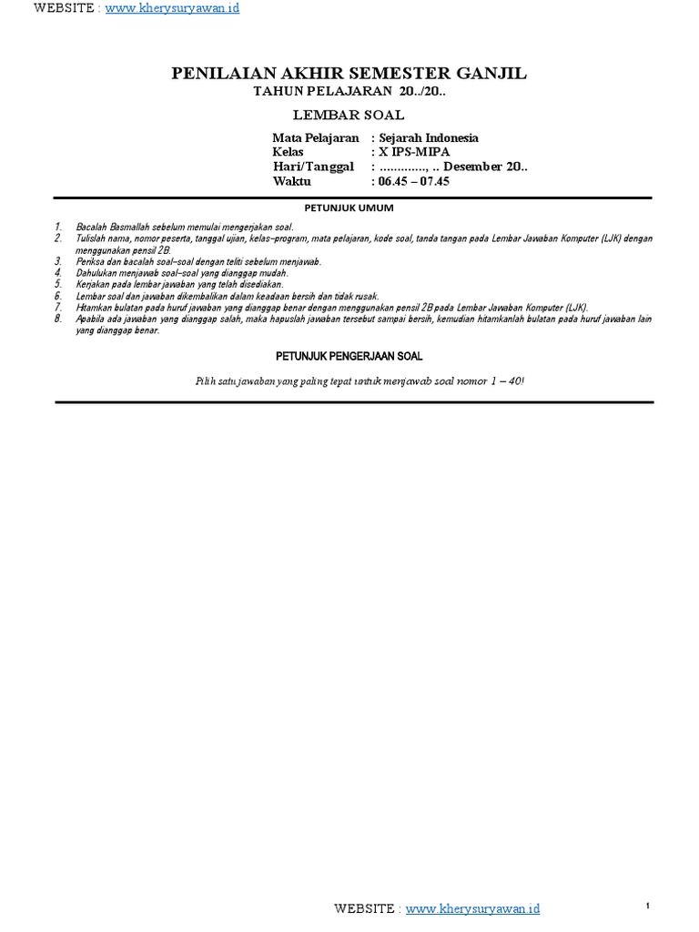 Salah satu cara efektif untuk mempersiapkan diri adalah dengan mengunduh dan mempelajari contoh soal esai PAS Sejarah Indonesia kelas 10 semester 2. Latihan soal-soal ini bukan hanya sekadar menghafal jawaban, melainkan sebuah proses pembelajaran yang memungkinkan siswa untuk mengidentifikasi topik-topik penting yang sering diujikan, memahami pola pertanyaan, serta melatih kemampuan berpikir kritis dan analitis mereka. Artikel ini akan memandu Anda mengenai pentingnya mengunduh soal esai, bagaimana cara memanfaatkannya secara optimal, serta memberikan gambaran umum mengenai materi yang sering muncul dalam PAS Sejarah Indonesia kelas 10 semester 2.