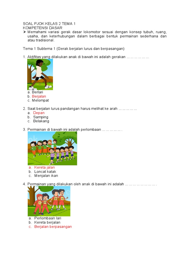 Tema 1 pada kelas 2 SD biasanya mencakup berbagai aktivitas yang membangun kesadaran tubuh, keseimbangan, kelincahan, serta kerjasama. Materi-materi ini dirancang agar siswa dapat memahami konsep-konsep dasar melalui pengalaman langsung. Agar pemahaman siswa semakin mendalam, latihan soal yang relevan sangatlah dibutuhkan. Artikel ini akan menyajikan contoh-contoh soal PJOK tema 1 kelas 2 SD, lengkap dengan pembahasan yang akan membantu siswa maupun guru dalam proses belajar mengajar.